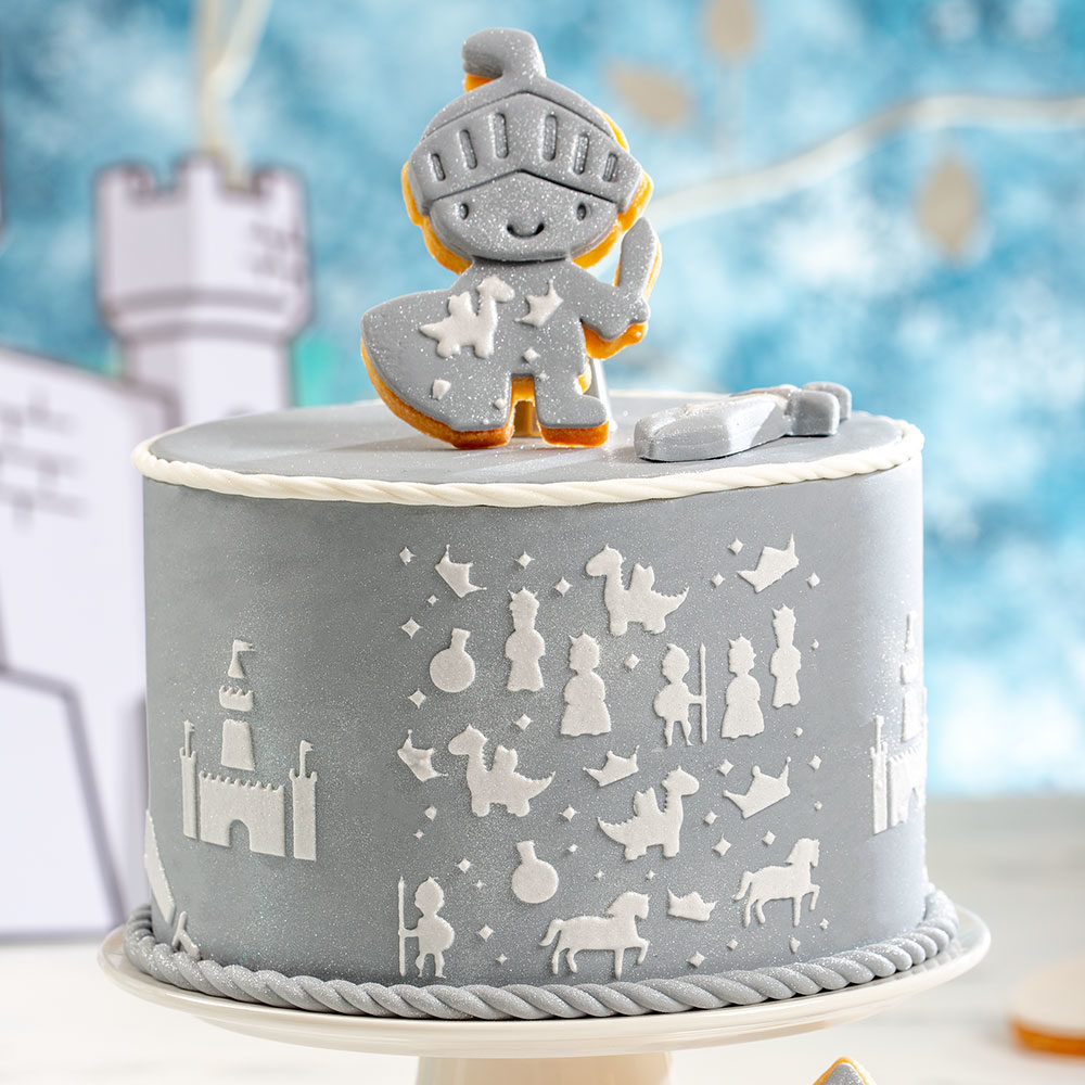 Überraschen Sie Ihre Liebsten, indem Sie schöne Cookies oder Tortendekorationen zum Thema Ritter erstellen. Diese schöne Schablone ist ideal zum Dekorieren von Plätzchen oder sogar einer Torte, z. B. mit königlicher Glasur oder Puderzucker. Enthält: 1 Plastik-Nahrungsmittel-Schablone 25 x 10 cm.