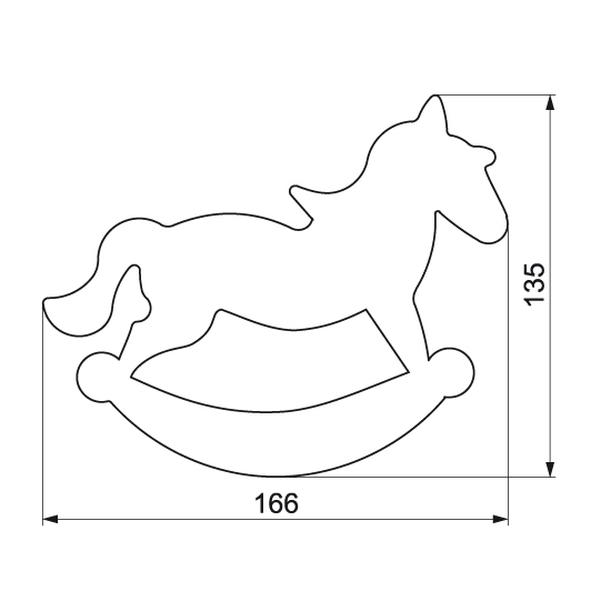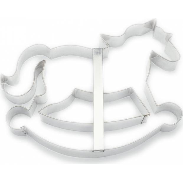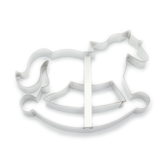 Ausstecher für Plätzchen in Form eines Schaukelpferds mit den Maßen 16 x 13,5 cm. Der Ausstecher besteht aus hochwertigem verzinntem Blech. Die scharfe Unterkante des Ausstechers, der verdoppelte obere Rand und die Spreizklammer im breitesten Teil garantieren immer eine perfekt ausgestochene Form.