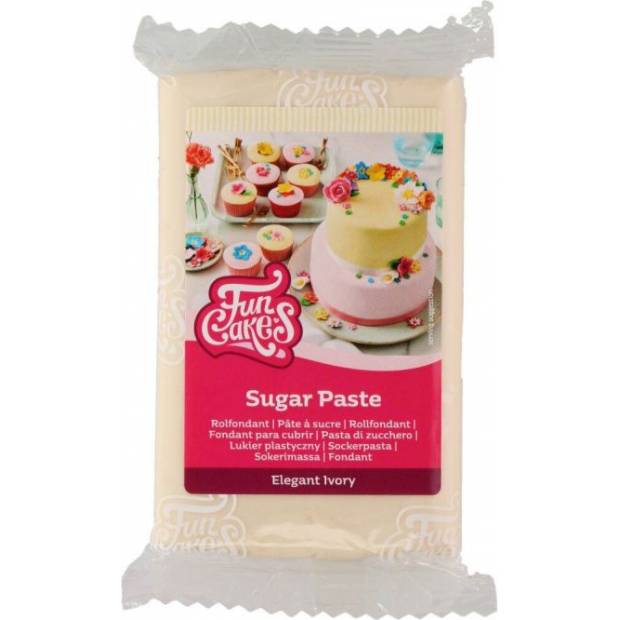 Zuckerte Masse hat eine schöne Farbe und einen köstlichen Vanillegeschmack. Ideale zum Abdecken der Torte und Ausrollen der Formen. Vor dem Gebrauch gut durchkneten und auf eine dünne Schicht Puderzucker ausrollen. Zuckerpaste kann auch zum Modellieren verwendet werden oder verschiedene Formen und Muster schaffen. Ebenso geeignet zum Färben mit Lebensmittelzusatzstoffen. Für die besten Ergebnisse lassen Sie das Fondant nach dem Färben eine Stunde ruhen (bedeckt). Vor weiterer Verarbeitung die Zuckerpaste erneut durchkneten. Für das Abdecken einer runden Torte mit einem Durchmesser von 20 cm benötigen Sie ca. 500 g Fondant. FunCakes Zuckermasse mit köstlichem Vanillegeschmack, sehr elastisch, glatt und dank ihrer feinen Struktur leicht zu verwenden. Fondant ist weich, flexibel und nach der Verarbeitung vollständig aushärtet. Durch ihr samtiges Finish ist die Zuckerpaste perfekt zum Überziehen der Torte geeignet. Wenn Sie Formen aus dem Fondant ausstechen möchten, ist gewährleistet, dass Sie scharfe, klare und saubere Schnitte erhalten. Zuckerpaste eignet sich auch hervorragend für Dekorationen, leicht modellieren oder verschiedene Formen und Muster schaffen. Inhalt: 250 Gramm. Lagerung: trocken und dunkel aufbewahren, 15°C – 20°C. Zubereitung: Für das beste Ergebnis folgende Vorgehensweise: Lassen Sie die Zuckerpaste auf Raumtemperatur erwärmen. Zuckerpaste gründlich kneten, bis sie glatt und elastisch ist. Bestäuben Sie die Arbeitsfläche mit etwas Puderzucker und rollen Sie das Fondant mit einem Nudelholz gleichmäßig aus (Dicke 2–3 mm). Drehen Sie die Zuckerpaste um ein Viertel, damit sie nicht klebt. Sind beim Ausrollen des Fondants an den Rändern immer noch feine Risse zu sehen? Kneten Sie erneut gründlich, bis die Ränder beim Ausrollen glatt sind. Danach ist die Zuckerpaste gebrauchsfertig.