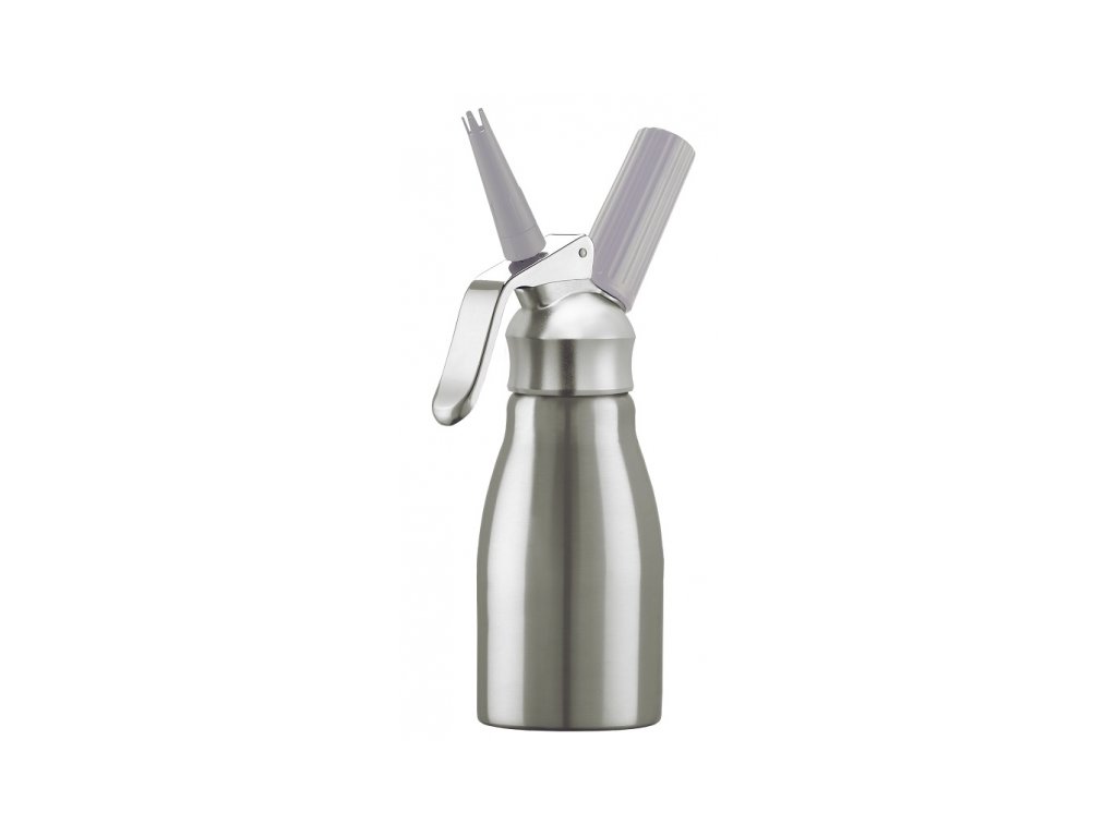 Schlagsahneflasche Symphonie ist aus Edelstahl gefertigt. Sie ist eine hervorragende Hilfe für eine einfache und vor allem schnelle Zubereitung von leckerer Schlagsahne. Fertige süße oder ungesüßte Schlagsahne können Sie bis zu 10 Tage lang aufbewahren. Sie können Volumen 0,25 l oder 0,5 l wählen. Es stehen zwei Tüllen zum Verzieren von Desserts, Kuchen, Pfannkuchen, Kaffee und mehr zur Verfügung. Der Flaschenkörper kann in der Spülmaschine gereinigt werden, der Kopf nur von Hand. Wird in Kombination mit Einweg- und Schraubenlose-Kapseln verwendet. Die Garantie auf die Schlagsahneflasche beträgt fünf Jahre.