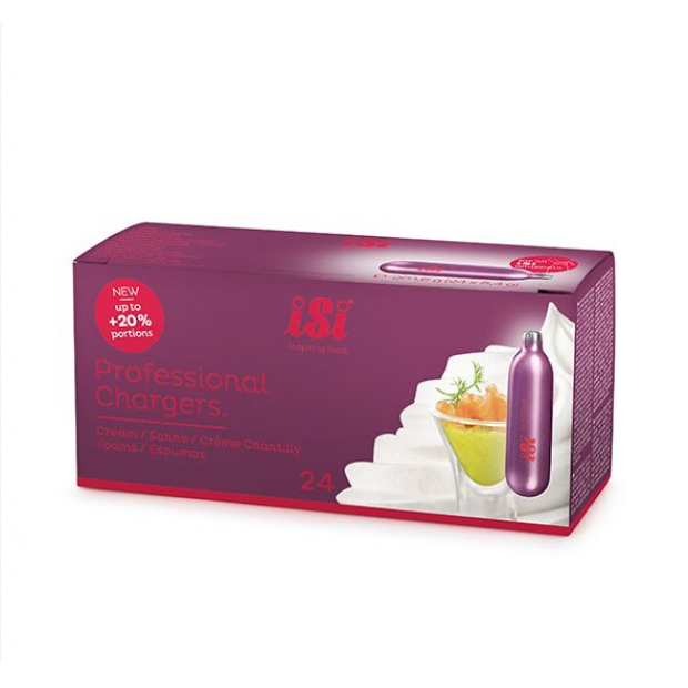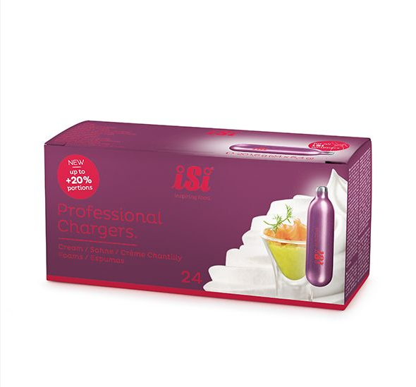 Diese Spitzen Schaumkapseln für Sahne sind geeignet zur Verwendung in Sahnespendern von iSi, aber auch in weiteren Systemen wie Tescoma, Liss, Hendi, Mossa und anderen. Sie sind nicht kompatibel mit Mixern, die austauschbare Sifos- und Kisag-Kapseln verwenden. Nur original Sahne-Schaumkapseln von iSi können die Qualität und den Geschmack liefern, den anspruchsvolle Verbraucher wünschen. Da sie ausschließlich für Sahnespenderen hergestellt werden, sind diese Kapseln ideal konzipiert und werden zu 100% Qualitätskontrollen unterzogen. Diese Sahne-Schaumkapseln bestehen zu 100% aus recycelbarem Stahl. Sie sind dicht, können auch nach dem auf der Verpackung angegebenen Haltbarkeitsdatum verwendet werden, jedoch garantiert der Hersteller nicht den Gasinhalt 8,4 g. Eigenschaften: Packung 24 Kohlendioxid-Schaumkapseln für Sahnegeräte. Beste Wahl für Milchalternativen und Sahne mit geringem Fettanteil. Beste Ergebnisse beim Schlagen mit weniger Kalorien. Funktioniert mit allen iSi-Sahnespendern. Schlägt bis zu 20 % mehr Portionen für Kosteneinsparungen bei Sahne. Erzeugt starke schnelle Infusionen. Hergestellt aus 100% recycelbarem Stahl.