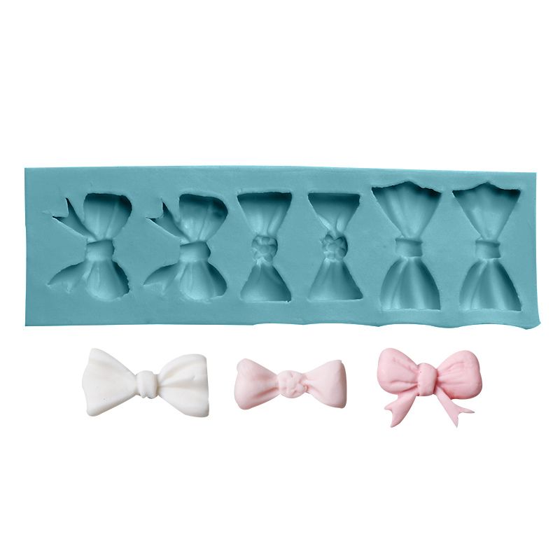 Praktische Silikonform zur Herstellung von Marzipan- oder Fondant-Märkchen? Actually "mašliček" means bows. Let's translate properly: "mašliček" = Schleifen. text: "Praktická silikonová formička na tvorbu mašliček na fondán, marcipán či čokoládu je perfektní pomůcka, která vám umožní vytvořit úžasné ozdoby dortu. Tato vysoce kvalitní silikonová forma je ideální pro vytváření dekorací s ozdobnou mašlí. Díky této formě snadno vytvarujete různé druhy cukrové pasty, jako je marcipán nebo plastová poleva, a vytvoříte tak fantastické detaily. Forma je extrémně flexibilní a nepřilnavá, díky čemuž lze vylisované prvky snadno oddělit od formy bez poškození. Tato silikonová forma je odolná a snadno se čistí. Dá se používat znovu a znovu, takže je nezbytnou pomůckou každého domácího cukráře. Velikost mašliček 3,5 - 1,5 cm.