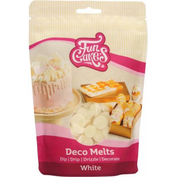 Löse auf, tauche ein, verziere und hab Spaß! Weiße FunCakes Deco Melts sind unglaublich vielseitige Überzüge, mit denen du Drip-Kuchen, Lollies und eindrucksvolle Dekorationen in wenigen Minuten zaubern kannst.