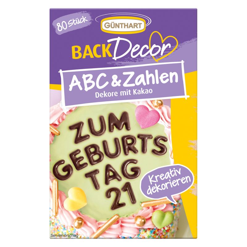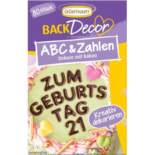 Dekorationen ABC und Zahlen von der Marke Günthart sind essbare Verzierungen aus Kakaobehang, die Torten, Cupcakes und Gebäcken eine persönliche und kreative Note verleihen. Ob Sie einen Namen, ein Alter oder eine kurze Botschaft ausdrücken möchten, Buchstaben und Ziffern werden zu einer hervorragenden Hilfe beim Verzieren. Dank des dunklen Schokoladenlaufs wirken sie elegant und dennoch verspielt, sodass sie sich für Kindergeburtstage, Geburtstage und festliche Anlässe eignen.