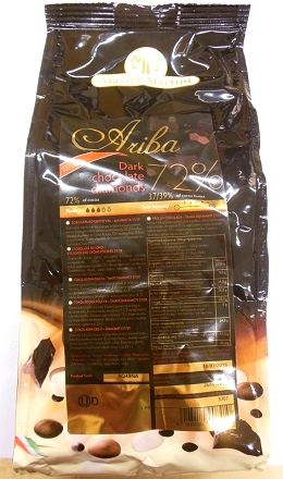Echte Schokolade mit 72% Kakaoanteil, in Form kleiner Diamanten. Gewicht: 1 kg.