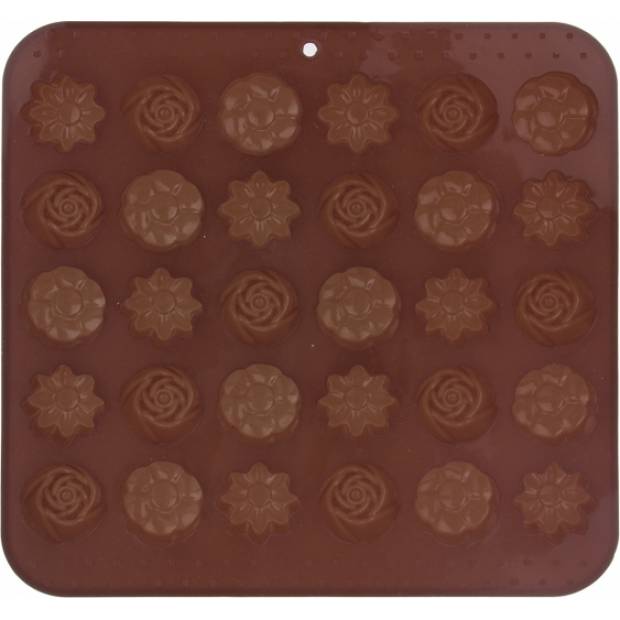 Wenn Sie Liebhaber dunkler, hochwertiger Schokolade mit höherem Kakaoanteil sind oder feine Milchpralinen, die am Gaumen zerlaufen, wird Sie diese haftende braune Form mit Blumenmustern sicherlich erfreuen.