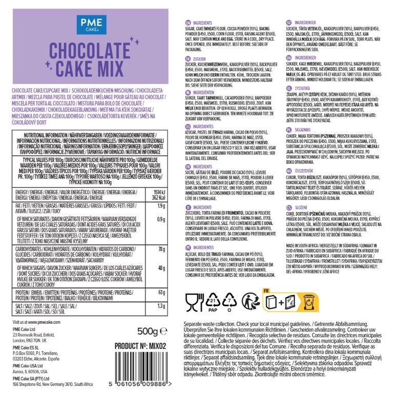 Diese Mischung der Marke PME ist vegetarisch, halal und koscher, daher für jeden geeignet, der etwas Süßes, Leckeres und Vielseitiges backen möchte. Sie eignet sich hervorragend für Geburtstage, Familienfeiern oder einen gemütlichen Nachmittagskaffee. Ob als Basis für Kuchen, Cupcakes oder Muffins – das Ergebnis wird immer perfekt sein – ohne Stress, ohne Durcheinander, einfach nach PME-Art.