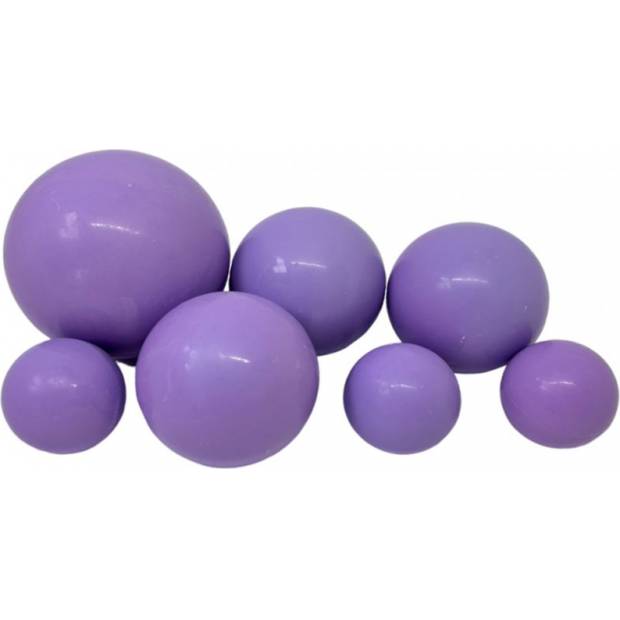 Schachteln Schokoladenkugeln in lila Farbe. Verpackung 7 Stück.