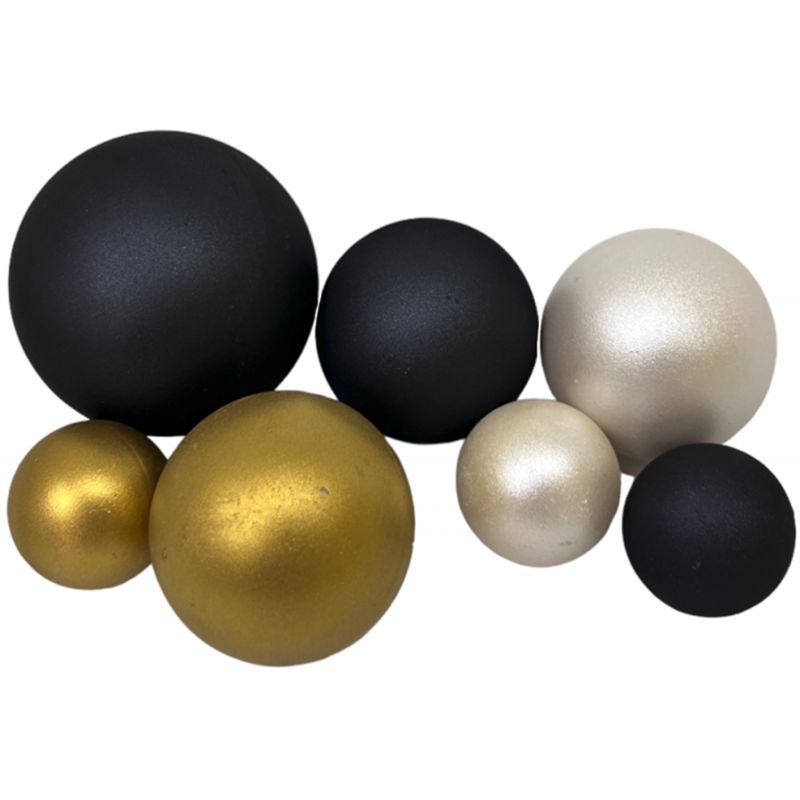Dekoration in Form von verschieden großen Kugeln aus hochwertiger Schokolade. Sie sind ein unverzichtbares Element der Konditordekoration. Perfekt zum Verzieren von Torten und anderem Gebäck, aber auch für Eis und Eisdesserts. Die dekorativen Kugeln unterscheiden sich durch ihre perfekte runde Form, ohne sichtbare Verbindungen, und ihre hohe Beständigkeit. Die gesamte Dekoration wirkt außerordentlich elegant und verleiht den stil anspruchsvollsten Konditore作品en eine Note. Unser Sortiment umfasst verschiedene Farben, sodass die Kugeln leicht an das jeweilige Event oder andere Tischdekoration angepasst werden können. Schokoladenverzierungen werden mit Augenmerk auf eine ästhetische Verarbeitung hergestellt. Sie schmecken gut und sehen hervorragend aus auf Torten, serviert zu Geburtstagen, Hochzeiten, bei Veranstaltungen wie Babyshowern und weiteren Anlässen. Lagerbedingungen: dunkel lagern bei einer Temperatur von (18 ± 3)% ?? und einer relativen Luftfeuchtigkeit von höchstens 75%. Abmessungen: 3x klein - 3 cm, 3x Mittel - 4 cm, 1x Groß - 6 cm.