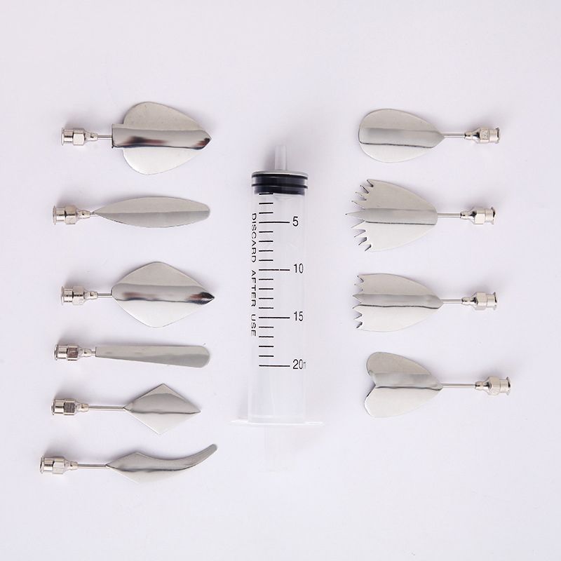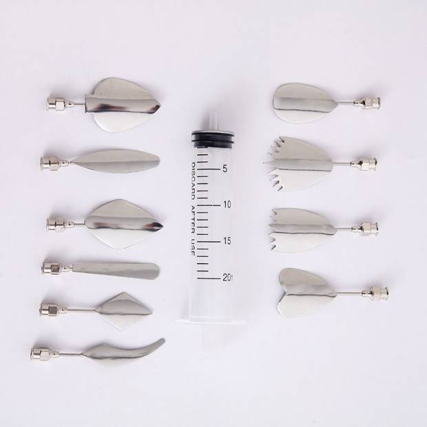 Diese Form stellt ein Hilfsmittel für 3D Jelly Flower Art dar. Sie enthält Komponenten zur Erstellung erfolgreicher 3D Gelatine-Kunstwerke von Jelly-Blumen sowie zur Herstellung von eingeschlossenen Blumen und Füllpflanzen in einer transparenten Basisgelatine. Das Set enthält Blätter verschiedener Pflanzenarten und zudem eine Spritze zum Auftragen der Gelatine. Hochwertige Werkzeuge für 3D-Gelee-Gelatine-Kunstbedarf aus Edelstahl, entworfen, um Menschen zu helfen, die schöne Gelatine herstellen möchten. Geeignet für professionelle oder häusliche Nutzung, genießen Sie Ihre Familie, Freunde, Design einzigartig, das Ihren besonderen Tag schmücken kann. Spezielles Design ist sehr sicher für Bastelprojekte. Das Set enthält 10 x Gelee-Nadeln, 1 x Spritze.