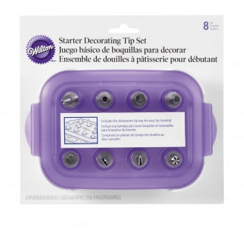 Set mit Spritzpasten für Anfänger und erfahrene Konditoren enthält verschiedene Spritzaufsätze aus Edelstahl von Wilton zum Verzieren von Kuchen, Gebäck und weiteren Produkten. Alles ist in einer praktischen Aufbewahrungsbox mit Deckel verstaut. Spülmaschinenfest, empfohlen wird jedoch eine manuelle Reinigung mit einer Spritzpinselbürste und Seifenlauge.