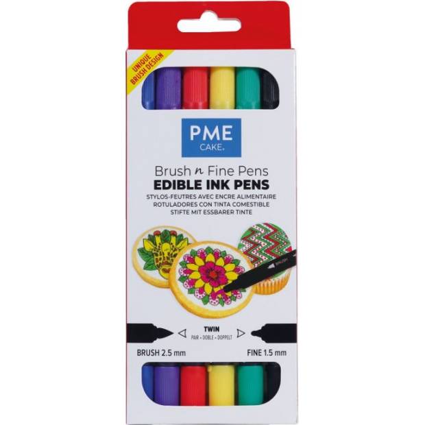 Fügen Sie feine Muster nach Belieben mit diesen farbigen Stiften hinzu. Zwei universelle Tipps ermöglichen es Ihnen, so kreativ zu sein, wie Sie möchten, egal ob Sie komplexe Designs mit feiner Spitze erstellen oder schön handschriftliche Nachrichten mit einem Pinsel schreiben. Mit diesen Stiften können Sie auf jedem Material arbeiten, wie Zuckerpaste, Fondant, gummiartige Paste, Marzipan und vieles mehr. Sie können nachgefüllt werden und werden mit einem essbaren Tintenbehälter für das Nachfüllen der Stifte geliefert. Stellen Sie den Stift einfach in einen Topf mit abgenommenem Deckel drei Stunden lang hinein, wischen Sie den Stift trocken ab und Sie können ihn erneut verwenden. Diese Stifte machen Kuchenbackenern und kleinen Kindern Spaß. Geben Sie den Kindern einen Kuchen, der mit weißem oder elfenbeinfarbenem Fondant bedeckt ist, und lassen Sie sie verzieren! Die Möglichkeiten sind endlos, besonders mit dem verfügbaren Farbspektrum.