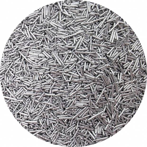 Silberne metallische Zuckerstangen machen Kuchen, Kekse, Cupcakes, Lebkuchen, Törtchen und Eis aus Keks sehr elegant. Sie verleihen Desserts ein perfektes Aussehen. Sie eignen sich für jede Gelegenheit. Von nun an ist das Verzieren von Cupcakes und Kuchen noch einfacher! Sie werden auch von professionellen Konditoren verwendet, um Torten und anderes Gebäck zu verzieren. Wir haben sie in verschiedenen Farben, Größen und Formen. Dadurch lassen sie sich problemlos mit anderen Details auf Gebäck oder Desserts abstimmen. Wenn Sie das Verzieren über eine weiche Fülle streuen, kann Feuchtigkeit aus ihr die Streuung weicher machen. Aber Vorsicht, wenn das Verzieren längere Zeit auf weicher Creme liegt, kann Farbstoff auch von der Streuung auf die Oberfläche der Creme freigesetzt werden. Wenn größere Teile der Dekoration beispielsweise auf einer Fondant-Torte haften sollen, können Sie diese Art der Dekoration mit halfester Schokolade oder Zuckerguss auf Lebkuchenkleidung kleben. Arbeiten Sie mit der Streuung am besten über einer Schüssel oder einem Backblech mit Rand.