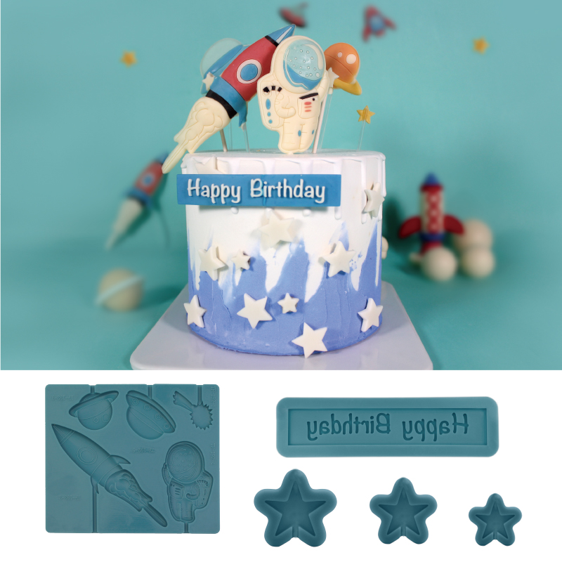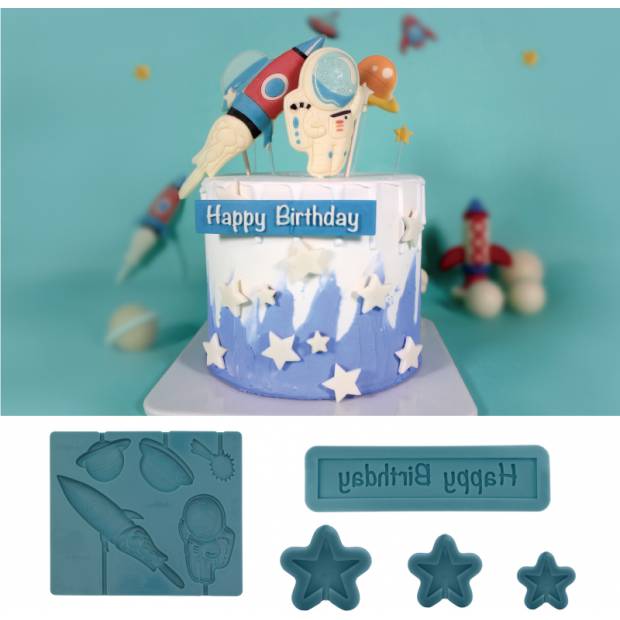 Mit dieser Silikonform erhalten Sie die gewünschte Form von Rakete, Sternen und Planeten, die als perfekte essbare Dekoration dient. Die Form besteht aus gesundheitlich unbedenklichem Silikon, der für den Umgang mit Lebensmitteln geeignet ist. Spülmaschinenfest.