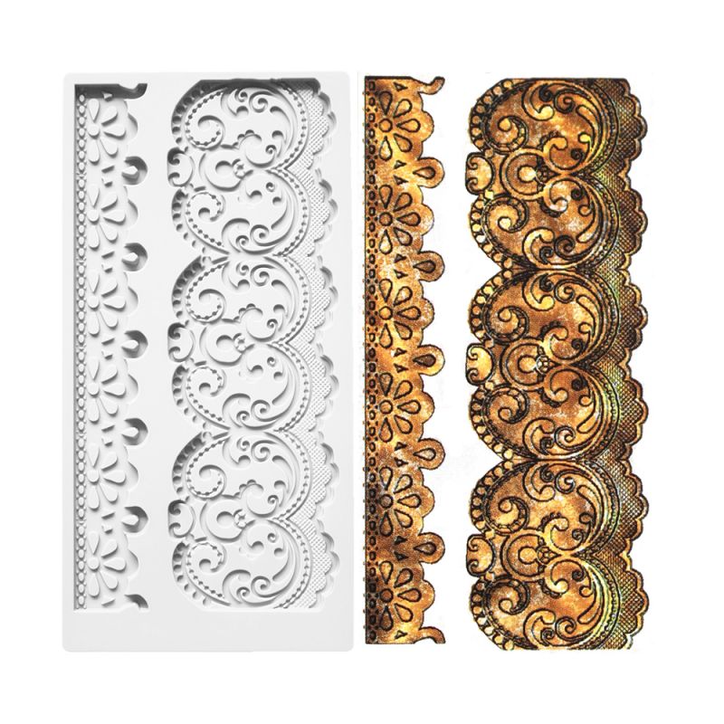 Praktische Silikonform für Massen wie Fondant, Marzipan oder Schokolade ist ein perfektes Hilfsmittel, das Ihnen ermöglicht, erstaunliche Ornamente an den Rand der Torte zu zaubern. Diese hochwertige Silikonform ist ideal für die Erstellung von Dekorationen mit einem bestimmten Motiv. Dank dieser Form formen Sie mühelos verschiedene Arten von Zuckerteig, wie Marzipan oder Zuckermasse, und erstellen so fantastische Details. Die Form ist äußerst flexibel und antihaftbeschichtet, wodurch die ausgestanzten Elemente leicht aus der Form gelöst werden können, ohne beschädigt zu werden. Diese Silikonform ist robust und lässt sich leicht reinigen. Sie kann immer wieder verwendet werden, daher ein unverzichtbares Hilfsmittel für jeden Hobbybäcker.
