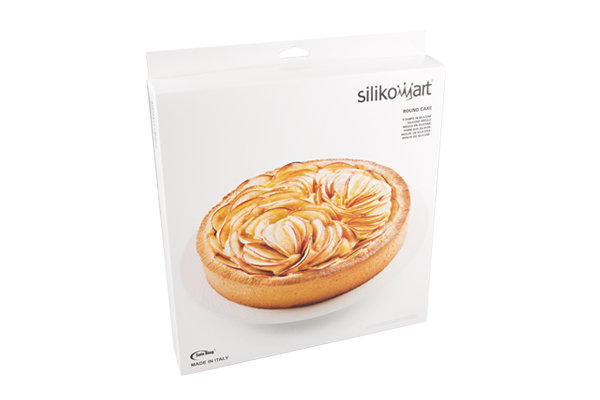 Form in Kuchenform von Silikomart ist eine hochwertige Silikonform hergestellt aus Platin-Silikon. Die Form von Silikomart ist backofentauglich, kühlschrankgeeignet, Gefrierschrank geeignet und spülmaschinenfest, hält Temperaturen von -60 °C bis +230 °C aus. Sie ist sowohl für professionelle Küchen und Betriebe als auch für den normalen Haushalt geeignet. In ihr backen Sie süße und herzhafte Kuchen mit einem Durchmesser von 26 cm, Höhe 4,5 cm.
