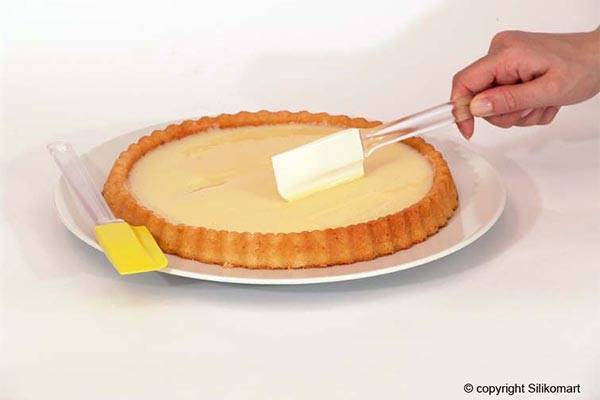 Die Spachtel wird beim Kneten des Teigs und beim Bestreichen von Cremes verwendet. Sie kann in der Spülmaschine gereinigt werden.