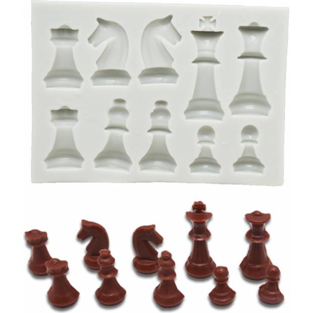 Silikonform zur Modellierung von Schachfiguren. Nachdem die Masse, zum Beispiel weiße oder dunkle Schokolade, gefüllt und nach dem Herauslösen der Dekore aus der Form entfernt wurde, erhalten Sie ein perfekt ausgearbeitetes Produkt. Die fertigen Werke können Sie mit Streuseln, Glasur oder essbarem glitzernden Gel verzieren. Die Form besteht aus gesundheitlich unbedenklichem Silikon, das für den Kontakt mit Lebensmitteln vorgesehen ist. Spülmaschinengeeignet.