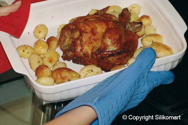 Silikonhandschuh zum Umgang mit heißen Speisen.