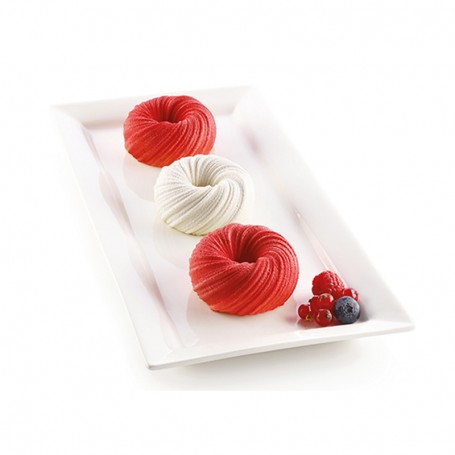 3D Intreccio vom Hersteller Silikomart ist eine hochwertige Form für die Herstellung von semifreddo-Desserts, Schokoladencremes oder verschiedenen gebackenen Leckereien. Das Muster dieser Silikonform erinnert an verflochtene, gekreuzte und gebundene Stränge, die eine zarte Verzierung bilden und jeden zubereiteten Kuchen zu etwas Besonderem und Außergewöhnlichem machen, geeignet für jeden Anlass. Die Silikonform ist mit einem revolutionären Innenrand ausgestattet, der deinen Kreationen eine leicht runde Basis verleiht. Silikonformen von Silikomart werden aus flexiblem und antihaftendem Silikon hergestellt, das in der professionellen Lebensmittelindustrie verwendet wird, kommen jedoch immer häufiger auch in Haushalten leidenschaftlicher Bäckerinnen und Konditoren vor. Diese Silikonformen ersetzen herkömmliche Metallformen und Bleche in der Gastronomie vollständig. Sie gewährleisten dieselbe Qualität und eine einfachere Handhabung. Die Silikon-Backformen sind praktisch und funktional und garantieren perfektes Kochen sowohl in Heißluftöfen als auch bei statischer Temperatur, ebenso wie in der Mikrowelle. Aber nicht nur das. Die Intreccio-Silikonform ist auch hervorragend zum Einfrieren im Gefrierschrank oder zur Aufbewahrung im Kühlschrank geeignet. Sie ist temperaturbeständig von -60 °C bis 230 °C. Die Form ist spülmaschinenfest.