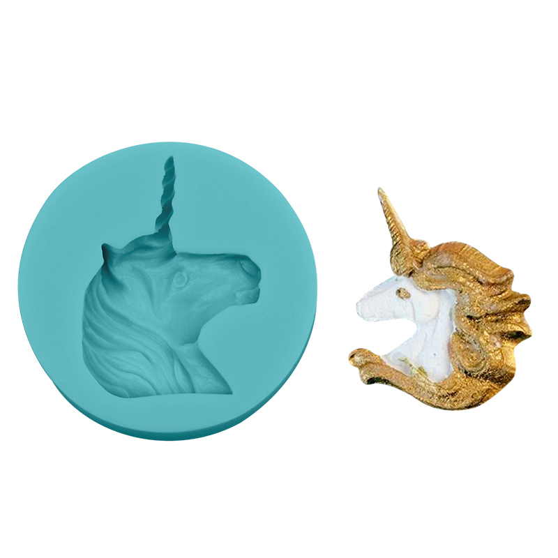 Silikonform in Einhorn-Form. Nach dem Befüllen mit der Masse und dem Entfernen der Dekore aus der Form erhalten Sie ein perfekt verarbeitetes Produkt. Den fertigen Einhorn können Sie mit Streu, Zuckerguss oder essbarem glitzerndem Gel verzieren. Die Form besteht aus gesundheitlich unbedenklichem Silikon, das für den Kontakt mit Lebensmitteln geeignet ist. Spülmaschinenfest.