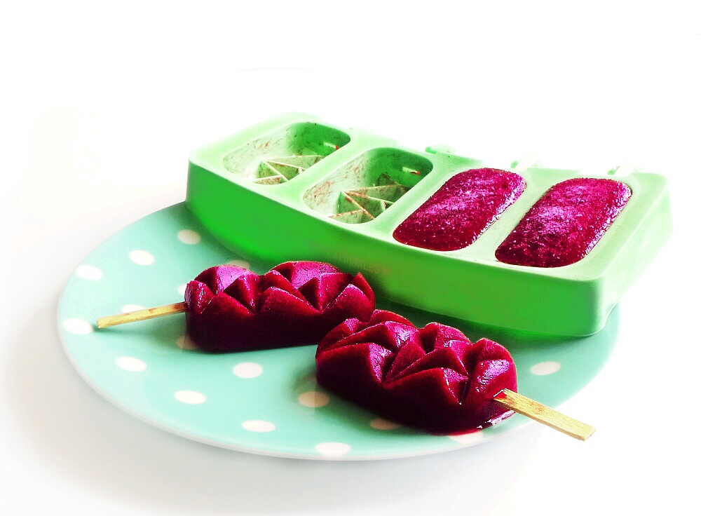 Muss zugeben, dass mich diese formschöne Form für Eis am Stiel regelrecht verzaubert hat. Die Herstellung dieses geometrischen Formats ist unter normalen Küchenbedingungen tatsächlich nicht realisierbar. Und dennoch lässt sich mit der Silikonform eine solche komplexe Form mühelos und ohne großen Aufwand herstellen.