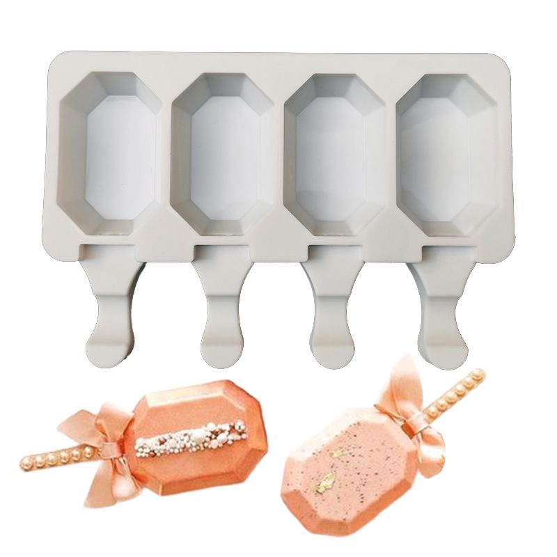 Form für Eis am Stiel von Cakesicq ist ein innovatives und modernes Set für Eis und Eis am Stiel. Es ermöglicht die Zubereitung von vier Stielen in Diamantform. Die Flexibilität der Silikonformen fügt sich perfekt zusammen und gewährleistet fehlerfreie Ergebnisse. Das Einfrieren ist bis zu -60 °C (-76 °F) garantiert, was kürzere Produktionszeiten und einfache Lagerung ermöglicht.