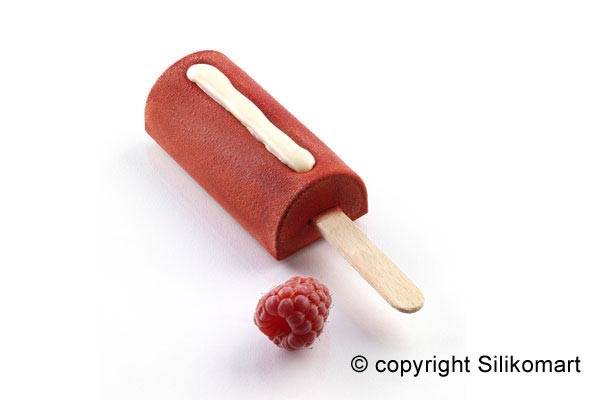 Silikonform für die Zubereitung von vier Eis am Stiel in Bögen. Im Set 30 Stiele.