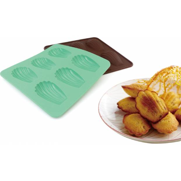 Silikonform für Madeleine muffins ermöglicht es Ihnen, 6 Madeleines gleichzeitig zuzubereiten. Die Form ist temperaturbeständig von -60 °C bis 220 °C. Madeleines sind kleine Kekse in Muschelform, die aus Lothringen stammen.