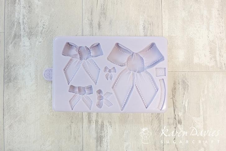 Silikonform für die Herstellung von dekorativen Schleifen auf Torten. Geeignet für Marzipan, Fondant oder Zuckerpaste.