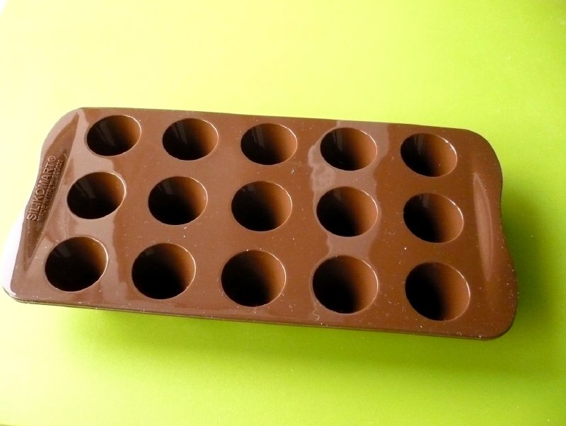 Hochwertige Silikonform für 15 Schokoladenkegel. Ø 2,6 cm, Höhe 2,8 cm.