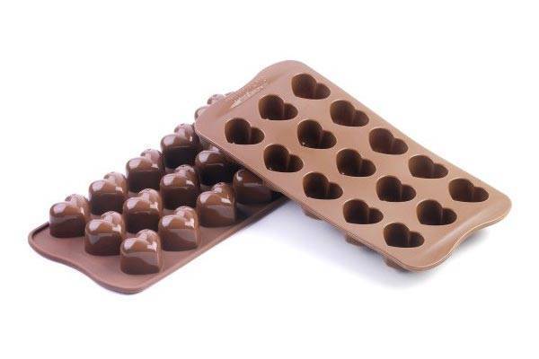 Ich habe Silikonformen für Schokolade von Silikomart sehr gern; ich bin mit Produkten dieser Marke sehr zufrieden. Sie sind in verschiedenen Ausführungen erhältlich und wirklich jeder findet das Passende. Diese herzförmige Form eignet sich das ganze Jahr über für alle Gelegenheiten. Selbstgemachte Pralinen oder Schokolade in dieser Form wird jedoch am Valentinstag am häufigsten gefragt sein. Wenn die Form nur für Schokolade verwendet wird, benötigt man 180–190 g. Es können alle Arten verwendet werden, sowohl Milchschokolade, Zartbitter als auch Weiße. Falls jemand Pralinen herstellen möchte, reichen 120 g Schokolade und eine haltbarere Füllung. Zum Beispiel sehr einfach: 50 g Kokosnuss mit 80 g gesüßter Kondensmilch mischen. Es gibt viele Möglichkeiten und der Kreativität sind keine Grenzen gesetzt. Bei der Herstellung von Pralinen gehe ich so vor: Die Schokolade im Topf schmelzen – Wasserbad, mit einer kleineren Pinsel eine schwache Schicht in die Vertiefungen der Form streichen und die Schokolade in der Kälte fest werden lassen. Dann wiederholen und nach dem erneuten Abkühlen die Füllung hineingeben, ein kleines Stück unter dem Rand und mit Schokolade ausgleichen. Die Oberfläche glätten und überschüssige Schokolade außerhalb der Form abwischen. Einige Stunden in den Kühlschrank lassen, am besten über Nacht, und die Pralinen aus der Form lösen. Es klappt perfekt. Wenn jemand nur Schokolade gießen möchte, dann nach dem Schmelzen und Befüllen der Form empfiehlt es sich, die Form mehrmals aus knieender Höhe auf eine Tischplatte zu schlagen, damit keine Luftblasen bleiben. Wenn wir in die leicht fest gewordene Schokolade einen Holzrührstab einbringen, kann die Herzform für heiße Schokolade verwendet werden, bei der die Schokolade in heiße Milch gegeben wird und durch Rühren schmilzt. Dem Schokolade kann bei der Herstellung eine kleine Prise Zimt hinzugefügt werden. Allen empfehle ich, sich das Video mit den Tipps von Herrn Radek Šubrt anzusehen; mir persönlich hat es sehr geholfen.