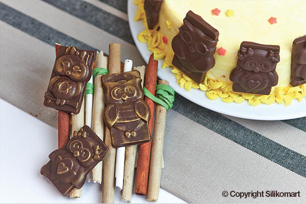 Originalform für die Herstellung von sechzehn Schokoladen. Im Set finden Sie neben der Form auch ein Rezeptbuch zur Inspiration. Die Eulenformen eignen sich dank ihrer Formen als Deko für Kuchen. Die Form kann nach dem Gebrauch in der Spülmaschine gereinigt werden. Die Abmessungen eines einzelnen Eulenkopfes betragen 6,2 x 4 cm.