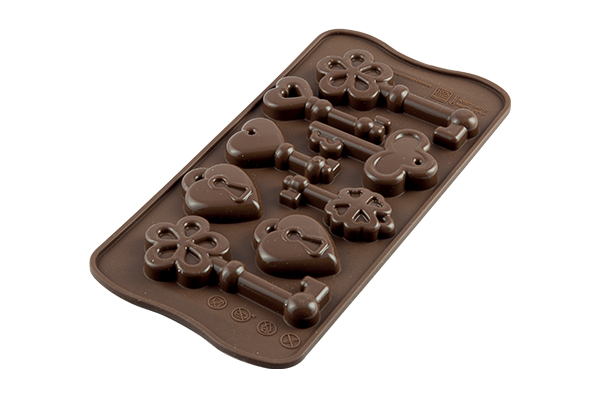Ideale Form zur Zubereitung essbarer Geschenke für Ihre Liebsten. Schokoladen-Schlüssel können Sie noch mit farbigem Schokoladenspray verzieren, das Sie in unserem Angebot finden. In der Form bereiten Sie acht Schokoladen-Leckereien zu. Zur Inspiration können Sie das Rezept verwenden, das Bestandteil des Sets ist. Abmessungen: 107 x 21 x 17 mm, Volumen 96 ml.