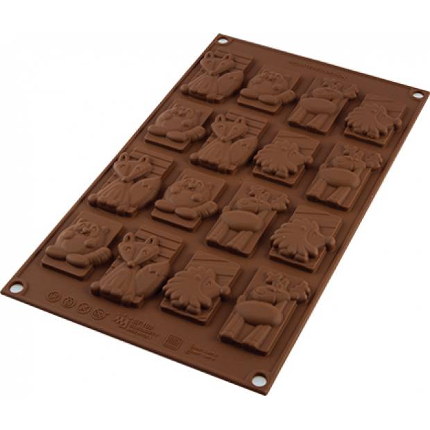 Form zur Zubereitung von sechzehn Schokoladentafeln mit Motiven von Rentier, Fuchs, Waschbär und Igel. Die Tafeln mit den Tieren sind eine ideale Belohnung für einen selbstgemachten Adventskalender zu Hause. Im Verpackung finden Sie neben der Form auch eine Rezeptbroschüre. Die Form ist sehr flexibel, so dass Sie die Schokolade daraus immer leicht lösen können.