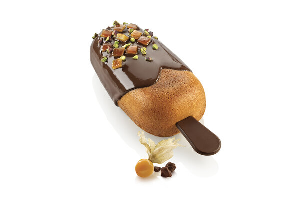 3D-Form Silikomart Gel01 Magnum XXL ist ein Set, das eine ovale Silikonform in der Form eines XXL-Eis am Stiel sowie eine hitzebeständige Form für die Herstellung von Schokoladenstäbchen umfasst. Die Form ist mit einer innovativen Innenkante ausgestattet, die den Grundmaßen deiner Vorbereitungen leicht abgerundete Formen verleiht. Silikomart-Formen werden aus 100% flüssigem Platin-Silikon hergestellt, dem besten Silikon auf dem Markt, da sie keine toxischen Elemente enthält. Und außerdem gesund sind, nehmen die Formen keinen Geruch an und haben einen niedrigen Gehalt an flüchtigen Substanzen.