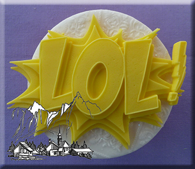 Silikonform mit der Aufschrift Lol! bietet eine einfache Lösung, um Ihre Kuchendekoration modern zu gestalten. Abmessungen 8 x 6 cm.