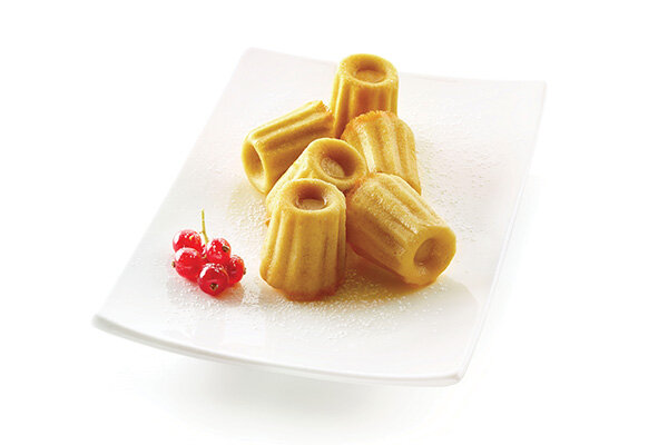 Silikonform, die Ihnen ermöglicht, ultraschmeichelnde Mini-Cannelés herzustellen. Geeignet zum Kochen und Einfrieren von -60 °C bis 230 °C. Geeignet für Mikrowelle und Geschirrspüler.