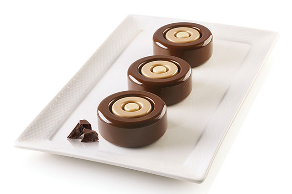 Silikonform „Mini Color“, mit der Sie 6 Mini-Desserts herstellen können. Sie besteht aus 3 Ringen und Sie erhalten 3 verschiedene Geschmacksrichtungen, Texturen und Farben. Diese Form können Sie auch für gefrorene Desserts verwenden, da sie temperatuurbeständig von -60 °C bis +230 °C ist. Durchmesser: ? 7,3 h 3 cm