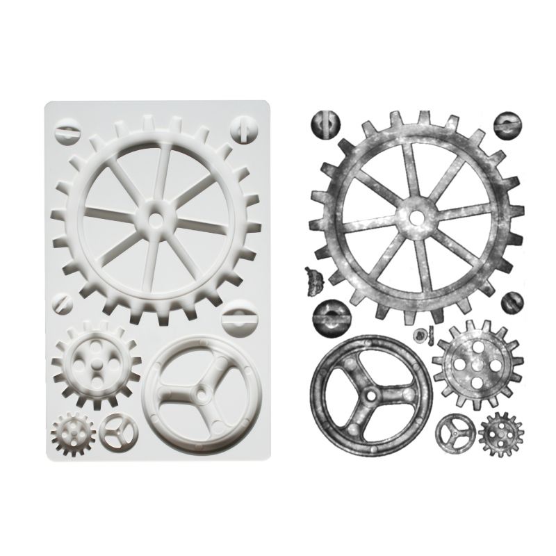 Praktische Silikonform für Massen wie Fondant, Marzipan oder Schokolade ist ein perfektes Hilfsmittel, das Ihnen ermöglicht, erstaunliche Kuchenverzierungen in Form von Zahnrädern herzustellen. Diese hochwertige Silikonform ist ideal zum Herstellen von Dekorationen mit einem bestimmten Thema. Mit dieser Form lassen sich leicht verschiedene Arten von Zuckerpaste, wie Marzipan oder Rollfondant, formen und so fantastische Details erzeugen. Die Form ist extrem flexibel und antihaftbeschichtet, wodurch die geprägten Elemente leicht von der Form gelöst werden können, ohne beschädigt zu werden. Diese Silikonform ist langlebig und lässt sich leicht reinigen. Sie kann immer wieder verwendet werden und ist somit ein unverzichtbares Hilfsmittel für jeden Hobbykonditor.