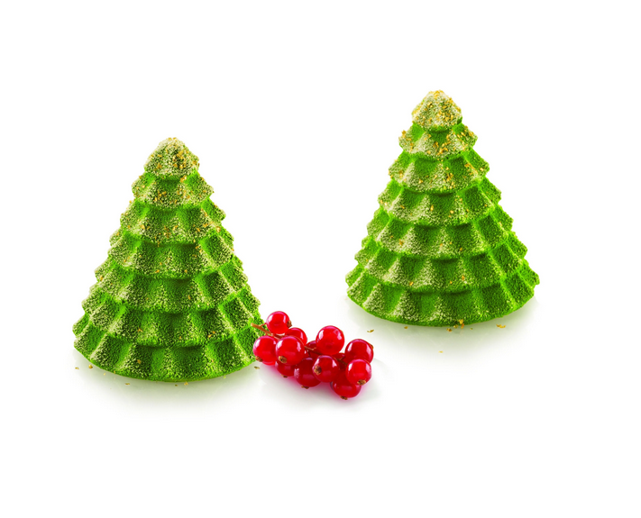 Wunderschöne 3D-Silikonform von Silikomart aus Italien. Stellen Sie dekorative Weihnachtsbäume wie Mousses und eisige Desserts her, dekorieren Sie sie mit Glasur oder Samtspray. Jedes Oberteil misst ?6,7 x 7,4 cm und das Volumen beträgt 85 ml. Die gesamte Form ergibt 6 Bäume und enthält 510 ml. Die Silikomart-Form zeichnet sich durch ihre extreme Vielseitigkeit aus, sie ist geeignet für Ofen, Kühlschrank und Hochdruck-Kühlgerät und hält Temperaturen von -60°C bis +230°C stand.