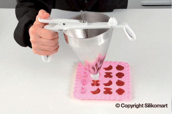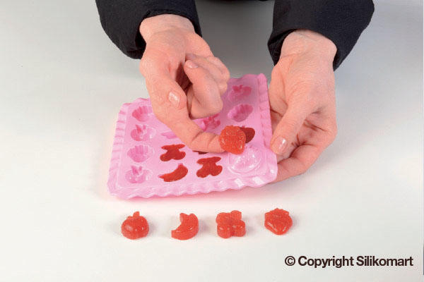 In dieser Form können Sie sowohl selbstgemachte Gummibärchen als auch klassische Lutschbonbons zubereiten. Neben der schön detaillierten Form enthält das Set auch ein Rezeptbuch, mit dem Sie die Bonbonmasse ganz einfach zubereiten können. Die Form enthält vier verschiedene Formen: Erdbeere, Banane, Kirsche und Apfel. Alle Formen werden immer perfekt sein, da die Form antihaftbeschichtet und sehr flexibel ist. Die Form kann nach dem Gebrauch in der Spülmaschine gereinigt werden. Das Volumen der Form beträgt 72 ml.
