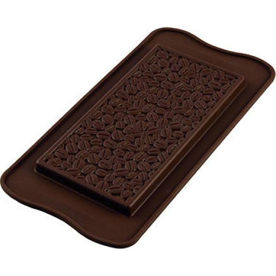Detailorientierte Form für die Zubereitung von selbstgemachten Schokoladentafeln mit Kaffeebohnenmuster.