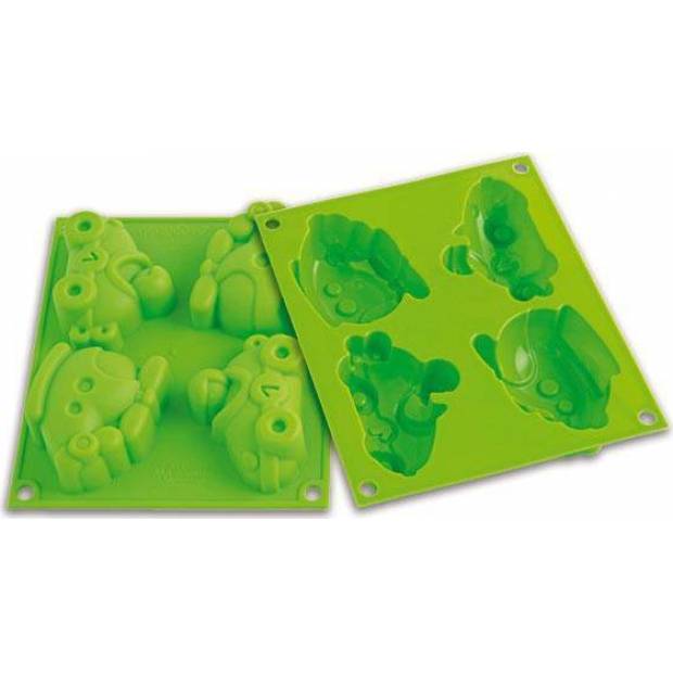 Sie brauchen die Silikonform nicht zu fetten. Gießen Sie einfach den Teig hinein und backen Sie ihn (er hält Temperaturen von bis zu 230 °C aus). Im Handumdrehen haben Sie Rennwagen und Hubschrauber auf Ihrem Tisch. Sie können die Form in der Spülmaschine reinigen.