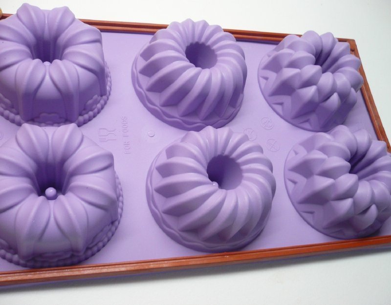 Die Form hält Temperaturen von bis zu 230°C aus und muss nicht eingefettet werden. Wir haben sie für Sie von einer Foodbloggerin testen lassen: In dieser Silikonform können Sie sechs kleinere Gugelhupfe backen, die sehr schön in Form sind. Das Volumen eines Gugelhupfs beträgt 100 ml, so dass man die Menge des Teigs anpassen muss. Bevor ich die Form fülle, streiche ich sie leicht mit Öl ein, entferne den Überschuss mit einer Serviette und bestäube sie auch nur leicht mit halbgarem Mehl. Sie können jede Art von Teig verwenden, ich mache normalerweise einen leichteren Biskuitteig mit einfachem Mehl und fette die Form ebenfalls leicht ein. Die gesamte Form ist rundherum mit einem abnehmbaren Streifen verstärkt, der an den Ecken befestigt werden kann. Sie passt zusammen mit der Form in den Backofen und erleichtert das Tragen der Form. Ich habe kein Problem damit, ohne diese Schiene zu backen, ich stelle die Form auf ein Backblech.