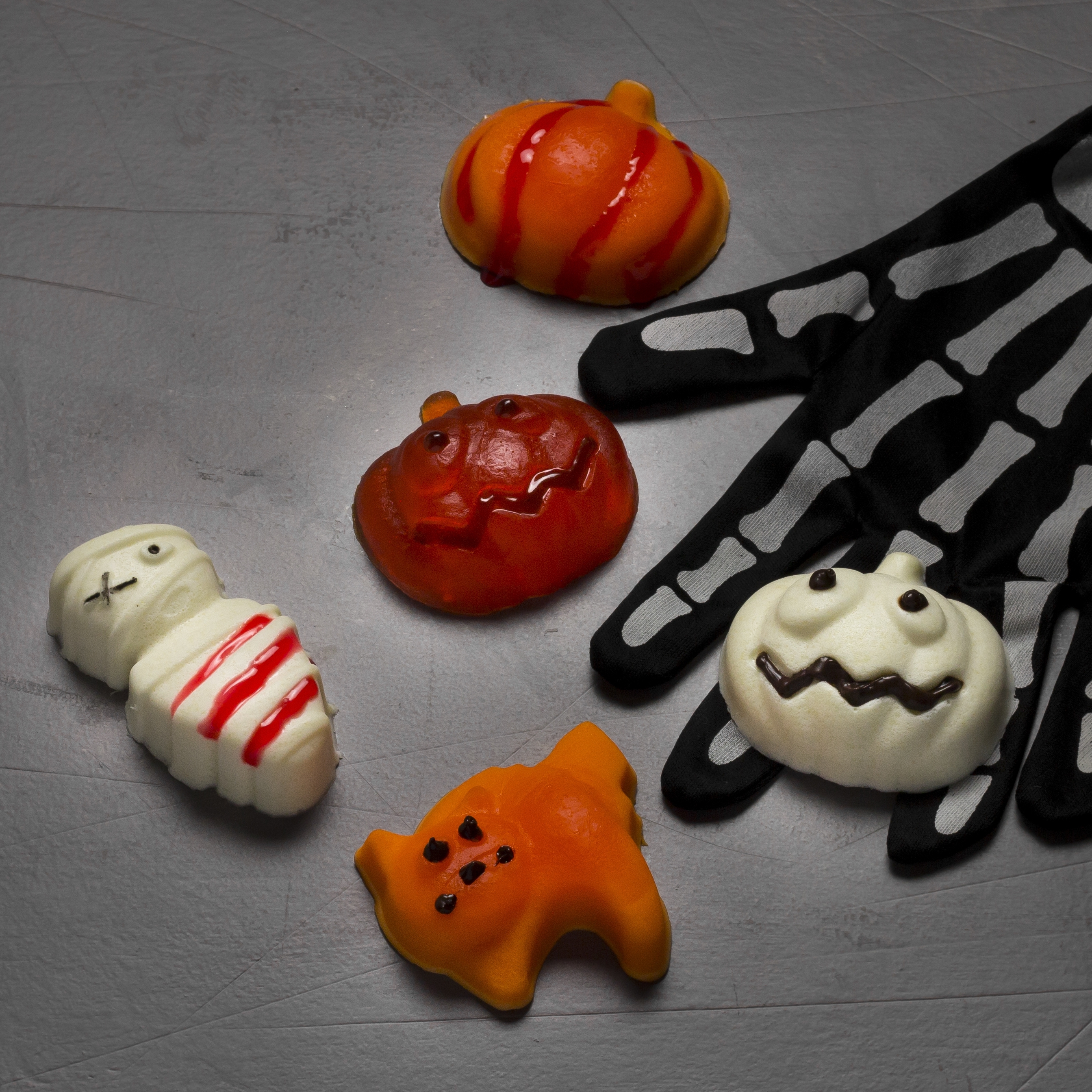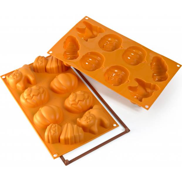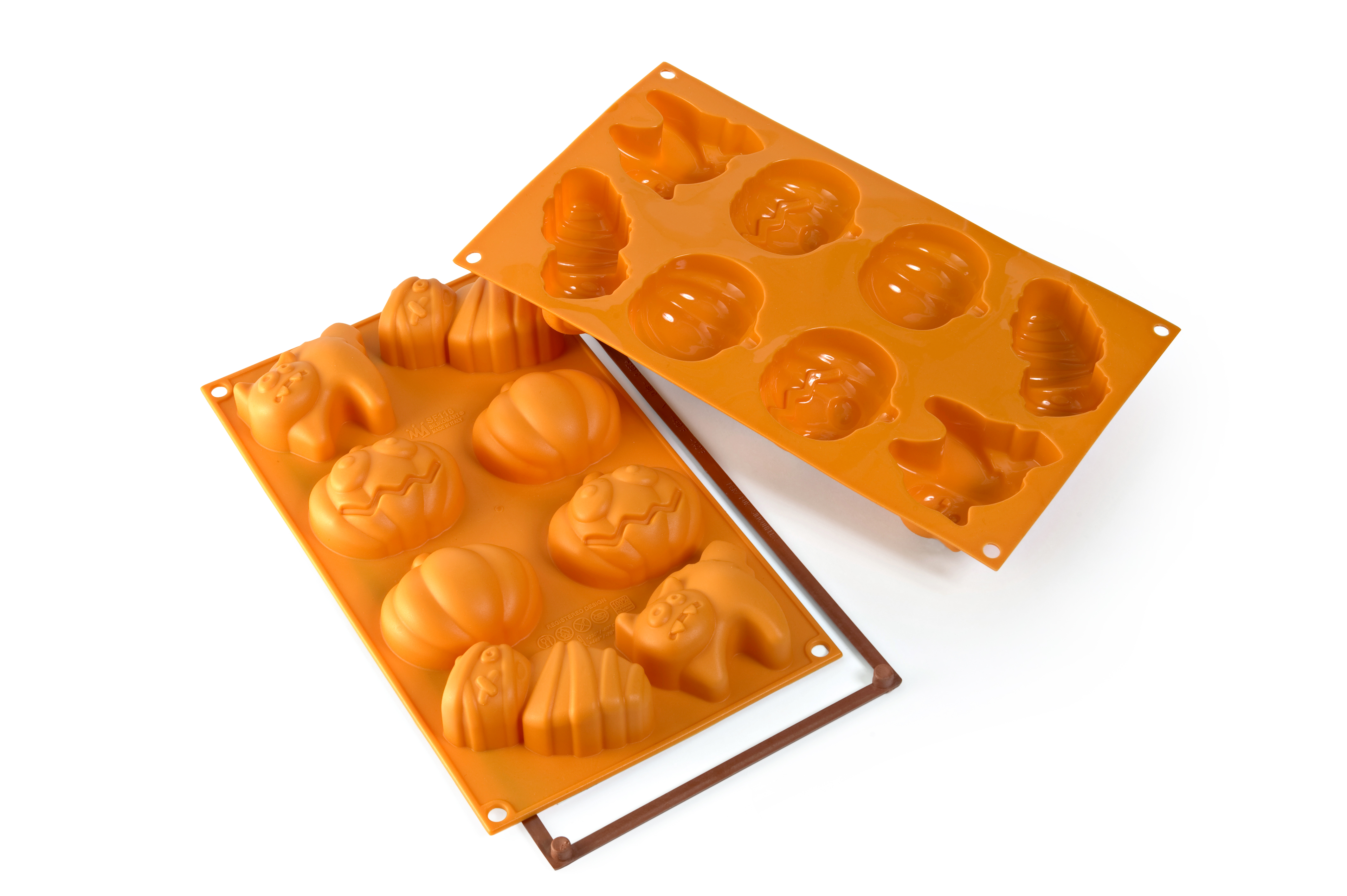 Die Silikonbackform für Halloween bietet vier lustige Motive für Ihre Süßigkeiten.