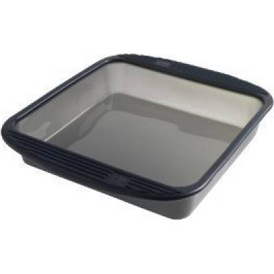 Graue Backform mit einem praktischen und rutschfesten Rand. Das Produkt wurde für das Backen jeglicher Köstlichkeiten entwickelt.