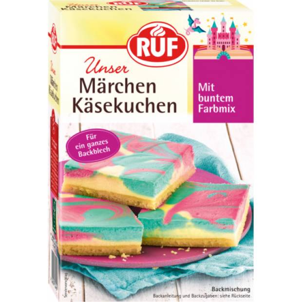 Was wäre ein Kindergeburtstag ohne einen leckeren Kuchen mit tollen Dekorationen, die die Augen zum Leuchten bringen? Unser fabelhafter RUF-Käsekuchen ist voll von fantastischem Geschmack. Die pastellfarbene Torte, die auf jeder Kindergeburtstagsparty einen Ehrenplatz einnimmt, wird die ganze Familie und ihre Gäste auf eine zauberhafte Reise durch die Welt der Fantasie mitnehmen. Der Märchenkuchen besteht aus einem köstlich krümeligen Boden mit einer leichten und luftigen Käsekuchenglasur mit Vanillegeschmack. Der Käsekuchen ist mit zwei verschiedenen Farbmischungen eingefärbt, die den Kuchen zu einem auffälligen Kunstwerk für jede Geburtstagsparty machen.