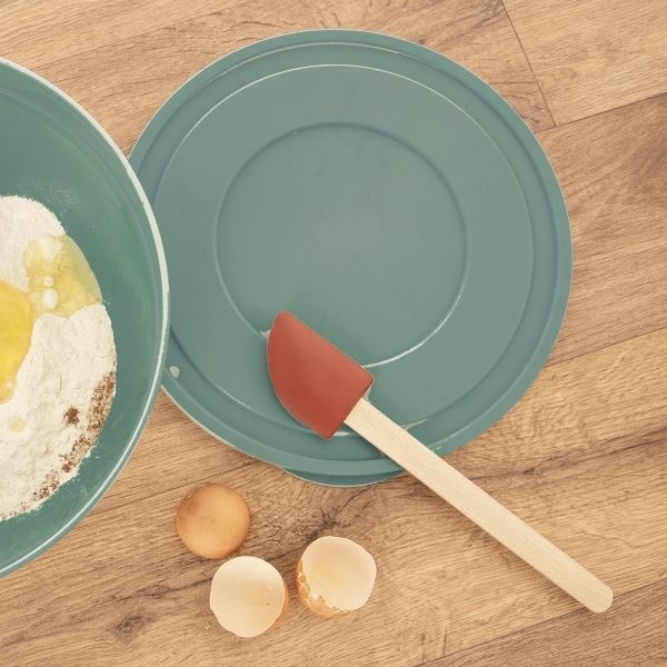 Eine Küchen-Rührspachtel in klassischer Form hilft dabei, den Teig, die Creme und die Sahne aus der Rührschüssel perfekt zu lösen.