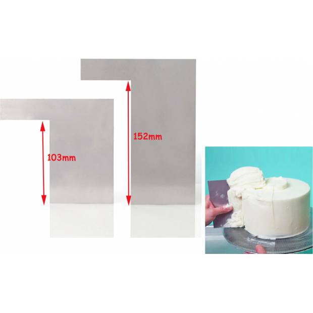 Mit diesen Glättwerkzeugen glätten Sie sowohl die Oberseite der Torte als auch deren Rand perfekt. Die Spachteln bestehen aus Edelstahl. Sie haben eine ergonomische Form, damit sie bei der Arbeit bequem gehalten werden können.